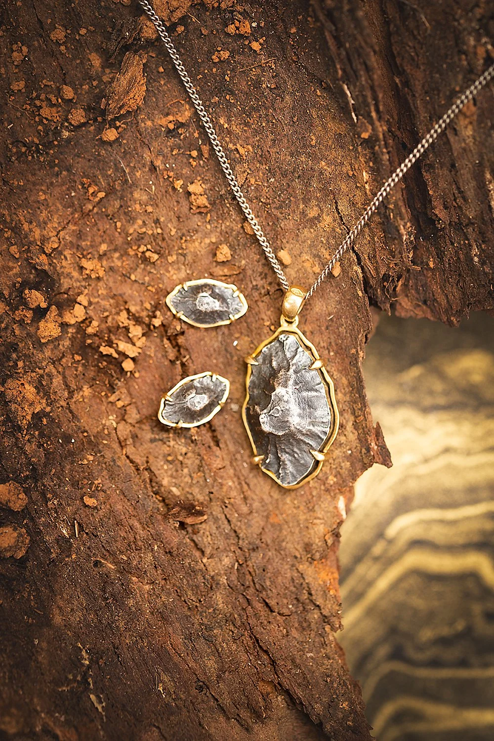 Jewelry made from scale elevation models, 3D printed, and then cast in silver and the higher end pieces have solid gold finishings. Uses new technology for design but the production is done using traditional metal smithing techniques all by hand.